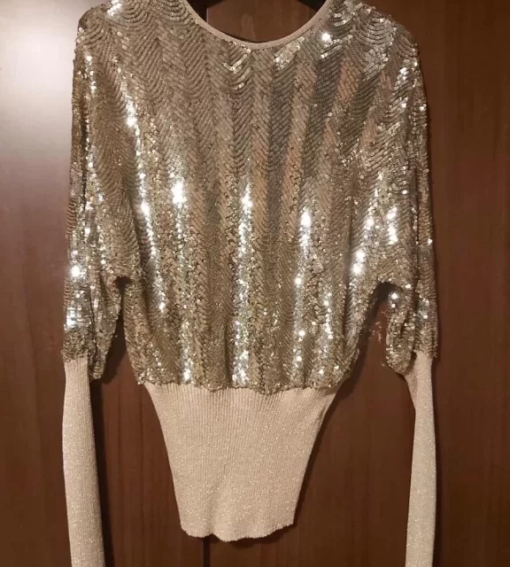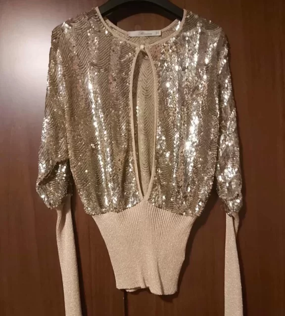 Blumarine Πουλόβερ Παγιέτα Καινούργιο Μπεζ Χρυσαφί