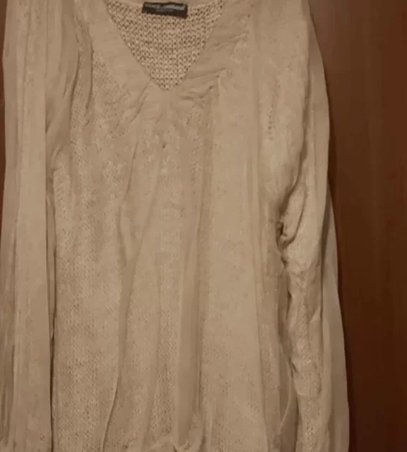 Dolce&Gabbana Μπλούζα Size XL Μακρύ Μανίκι Πλεκτή με Τούλι Καινούργιο Μπεζ