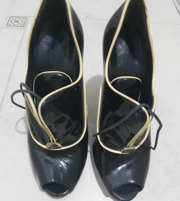 Gucci γόβα τύπου μποτάκι μαύρο λουστρίνι μεταχειρισμένη, τακούνι στιλέτο 38 GUCCI Γοβα Τυπου Μποτακι Ψηλο Τακουνι Στιλετο Χρωμα Μαυρο Λουστρινι Πολυ Καλη Κατασταση Τρεις Φορες Φορεμενο!!!