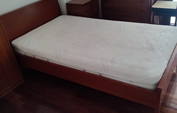Μονό ξύλινο κρεβάτι με κεφαλάρι μαζί με το στρώμα του.  Είναι σε εξαιρετική κατάσταση. Η τιμή περιλαμβάνει και τα δύο κομοδίνα του. (Πωλείται και χωρίς αυτά)