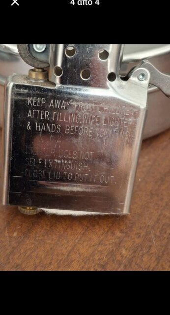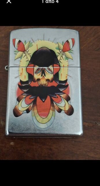 Zippo Lighter – Skull with Feathers Design (04/L) Κωδικός insert: L / 04 → Κατασκευή: Δεκέμβριος 2004 Θήκη: Classic brushed chrome Design: Έντονο tribal ή tattoo-style σχέδιο με νεκροκεφαλή, κουκούλα και φτερά/βέλη Κατάσταση: Μεταχειρισμένος, ελαφρά σημάδια (ειδικά στο μεταλλικό σώμα), αλλά φαίνεται σε λειτουργική κατάσταση Original ZIPPO Lighter – Skull Tattoo Design (2004) Αυθεντικός Zippo, με έντονο σχέδιο tribal skull Χρονολογία κατασκευής: Δεκέμβριος 2004 (L 04) Made in USA – στιβαρή μεταλλική κατασκευή Κατάσταση: Καλή, με σημάδια χρήσης – λειτουργεί κανονικά