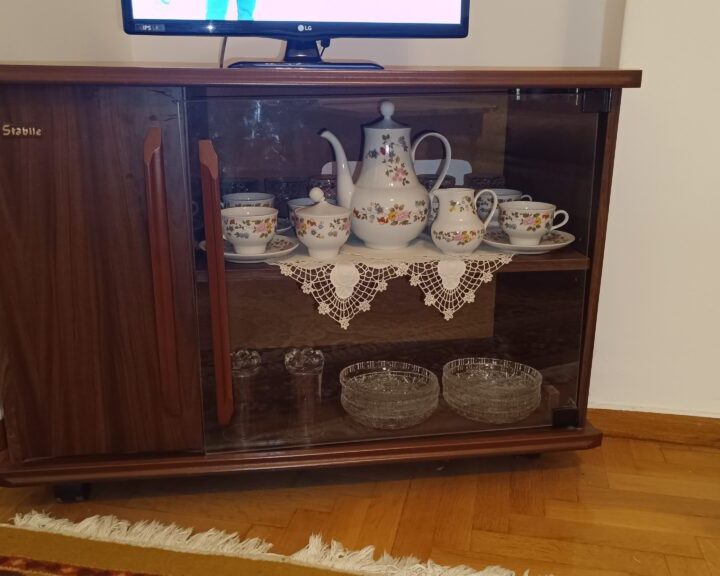 Stabile vintage ξύλινο μπουφέ/έπιπλο τηλεόρασης/χαμηλό σύνθετο, πιθανώς από τη δεκαετία του ’60 ή του ’70, με στοιχεία ρετρό στυλ. Το μόνο θέμα είναι πως η βιτρίνα δεν κλείνει καλά. Την μεταφορά την αναλαμβάνετε με δικά σας έξοδα και άτομα.