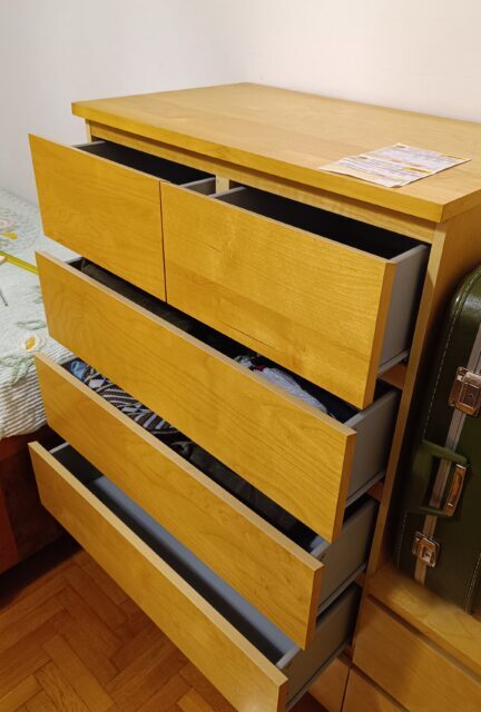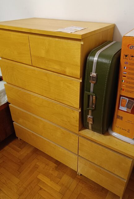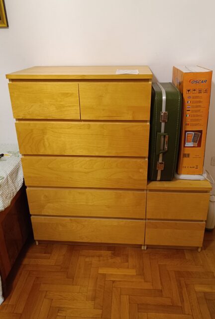Συρταριέρα MALM της ΙΚΕΑ. Η συγκεκριμένη σύνθεση αποτελείται από δύο τεμάχια της σειράς: μία φαρδιά συρταριέρα με 6 συρτάρια (δύο μικρά επάνω και τέσσερα μεγάλα από κάτω) και μια στενή συρταριέρα με 2 συρτάρια. Την μεταφορά την αναλαμβάνετε με δικά σας έξοδα και άτομα.