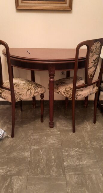τραπεζαρία αναδιπλούμενη με 5 καρέκλες και άλλες δύο τύπου πολυθρόνες