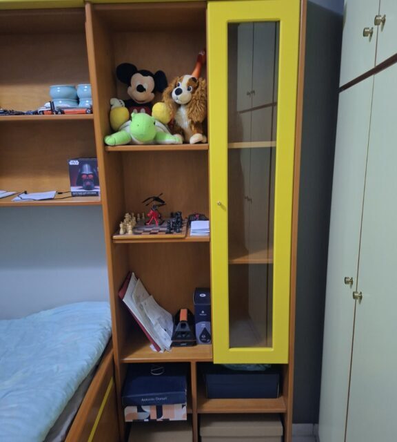 Διαθέτει: 2 ντουλάπια (ένα διπλό και ένα μακρόστενο με τζάμι) + 9 ράφια.