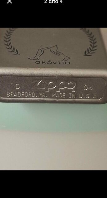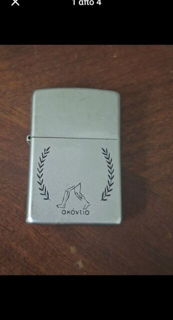 Πωλείται αυθεντικός αναπτήρας Zippo, παραγωγής Απριλίου 2004 (κωδικός D 04), με αυθεντικό εσωτερικό ένθετο της ίδιας χρονολογίας. Κατασκευή: Bradford, Pennsylvania – USA Πολύ ιδιαίτερο κομμάτι, με ελληνικό σχέδιο “Ακόντιο”: δυο ανθρώπινα πόδια ανάμεσα σε δάφνινα στεφάνια, πιθανόν διαφημιστικός ή συλλεκτικός Zippo περιορισμένης κυκλοφορίας. Φινίρισμα: ματ ασημί (matte silver) Κατάσταση: Καλή λειτουργική, με φυσιολογικές φθορές χρήσης Λειτουργεί κανονικά, χωρίς πρόβλημα Χωρίς κουτί Ιδανικός για συλλέκτες ή λάτρεις των θεματικών Zippo με ελληνικά μοτίβα. Μοντέλο: Zippo με ελληνική επιγραφή “Ακόντιο” και λογότυπο με πόδια μέσα σε στεφάνι – ιδιαίτερο custom σχέδιο, πιθανότατα διαφημιστικός ή θεματικός (ίσως για ελληνικό brand ή εκδήλωση). Φινίρισμα: Matte Silver (ματ, με λεπτές φθορές/σημάδια χρήσης) Κατάσταση: Καλή λειτουργική κατάσταση, με φυσιολογική φθορά Χρονολογία παραγωγής: Εξωτερικό σώμα: D 04 → Απρίλιος 2004 Εσωτερικό ένθετο: D 04 → Ταυτίζεται, είναι original insertΚατασκευή: Made in Bradford, PA, USA ,40 ευρώ ΤΙΜΗ ΣΥΖΗΤΉΣΙΜΗ.  Συλλεκτικός αναπτήρας Zippo “Ακόντιο” – Αυθεντικός, USA 2004