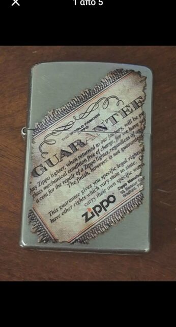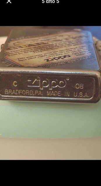 Zippo “Guarantee” Design (με ανάγλυφο σχέδιο της εγγύησης) Χρονολογία: Μάρτιος 2008 (C/08) Καπάκι/Θήκη: Brushed chrome (σαγρέ/ματ) Κατάσταση: Εξαιρετική / σχεδόν αχρησιμοποίητος (ελάχιστες φυσιολογικές γρατζουνιές) Λειτουργία: Πλήρως λειτουργικός Χωρίς κουτί, αλλά το ένθετο είναι το αυθεντικό και της ίδιας χρονιάς (E/08 = Μάιος 2008) Σχέδιο: Σπάνιο, συλλεκτικό – δεν κυκλοφορεί πλέον ευρέως Zippo με το σχέδιο “Zippo Guarantee torn paper”, παραγωγής Μάρτιος 2008 (σύμφωνα με το γράμμα C και αριθμό 08 στη βάση). Συλλεκτικός Zippo αναπτήρας μοντέλο “Guarantee”, κατασκευής Μάρτιος 2008. Σε άριστη λειτουργική κατάσταση, ελάχιστα χρησιμοποιημένος, με αυθεντικό ένθετο (Μάιος 2008). Το σχέδιο “Guarantee torn paper” είναι σπάνιο και έχει πάψει να παράγεται. Χωρίς κουτί. Made in USA – 100% αυθεντικός 40 ευρώ ΤΙΜΉ ΣΥΖΗΤΉΣΙΜΗ. Zippo Guarantee 2008 – Συλλεκτικό, Σπάνιο Σχέδιο, Άριστη Κατάσταση